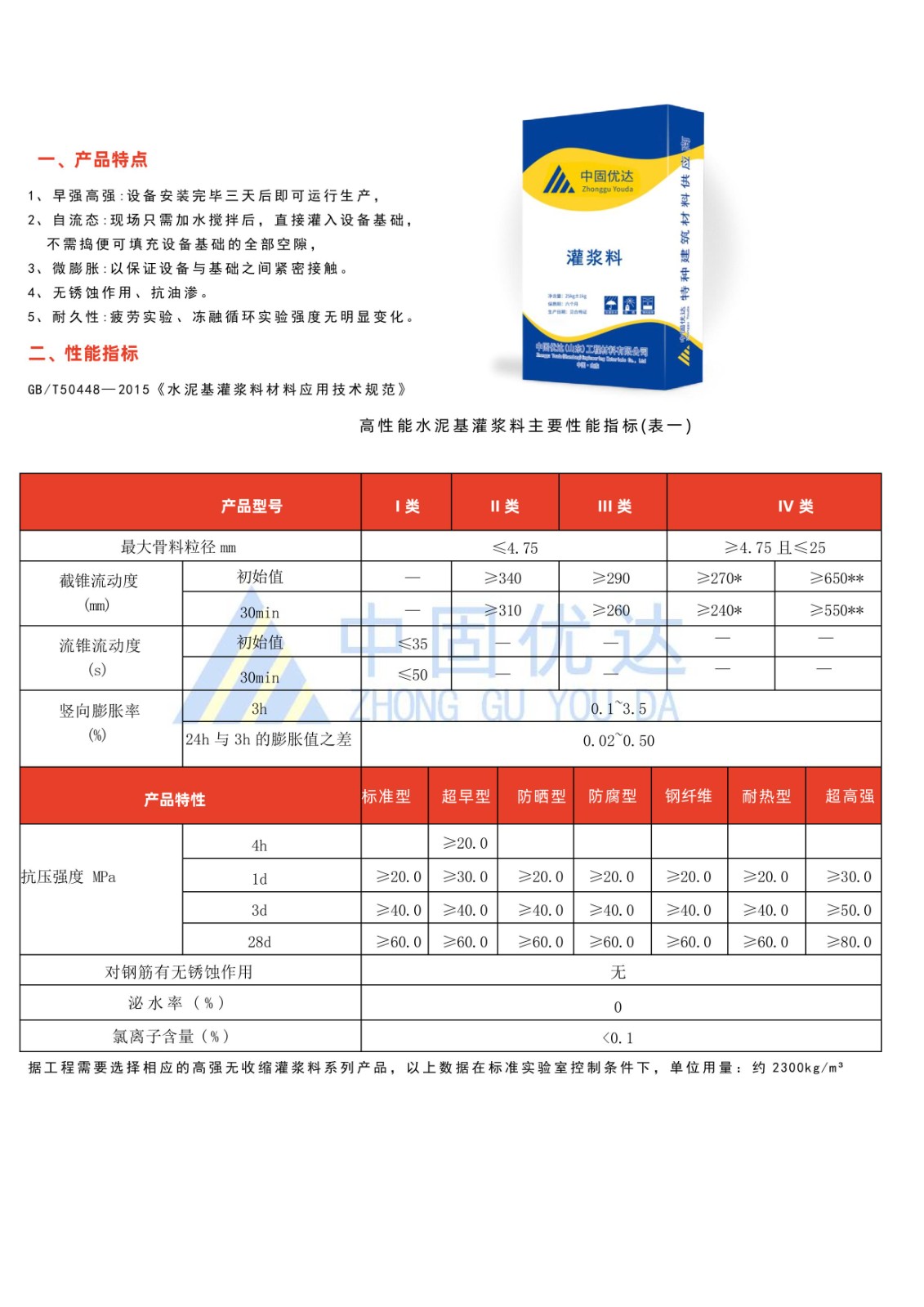 早強、高強、抗離析、綠色環保、微膨脹性、自流性好、粘結度高、耐久性強、抗開裂等