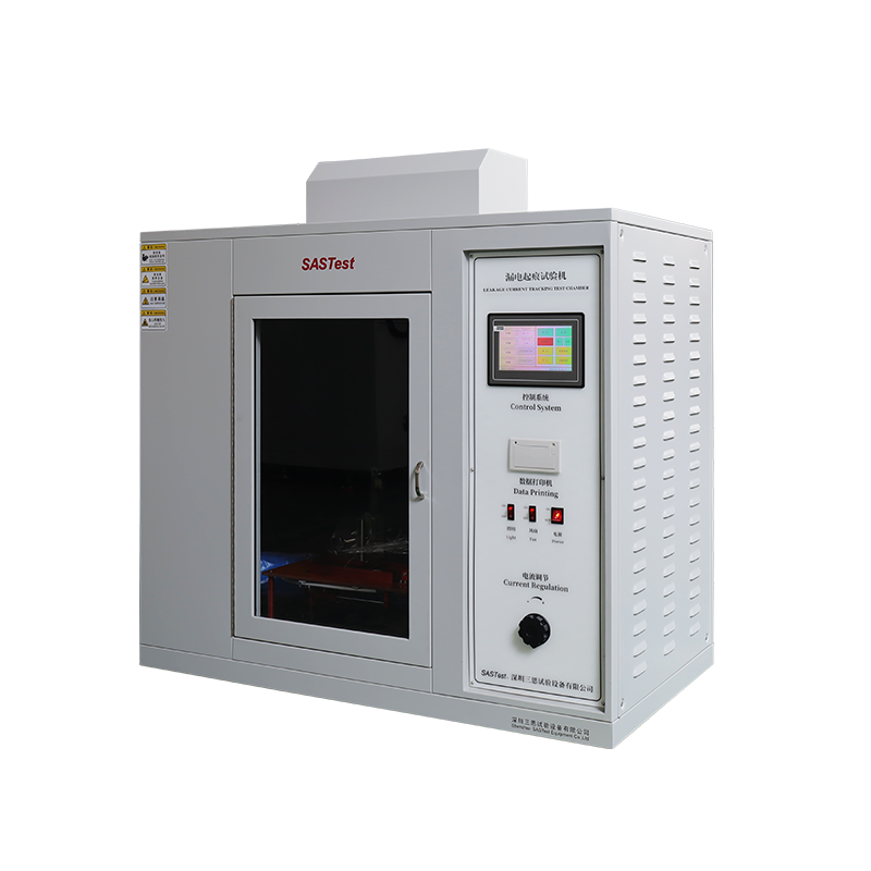 漏電起痕試驗箱用于電器產品受潮濕和雜質環境的影響下,不同極性的帶電部件之間或帶電部件與接地金屬部件之間可能會引起絕緣上的漏電,產生的電弧對電器造成擊穿短路或由于放電使材料蝕損,甚至引燃導致火災。本試驗儀器就是模擬上述情況對絕緣材料進行的一種破壞性試驗,用以測試和評定在規定電壓下,絕緣體在電場和含雜質水作用時的相對耐漏電起痕性。適用于電工電子產品,家用電器的固體電器絕緣材料及其產品,如:繼電器插座、轉換開關蓋、接觸器軀體等。